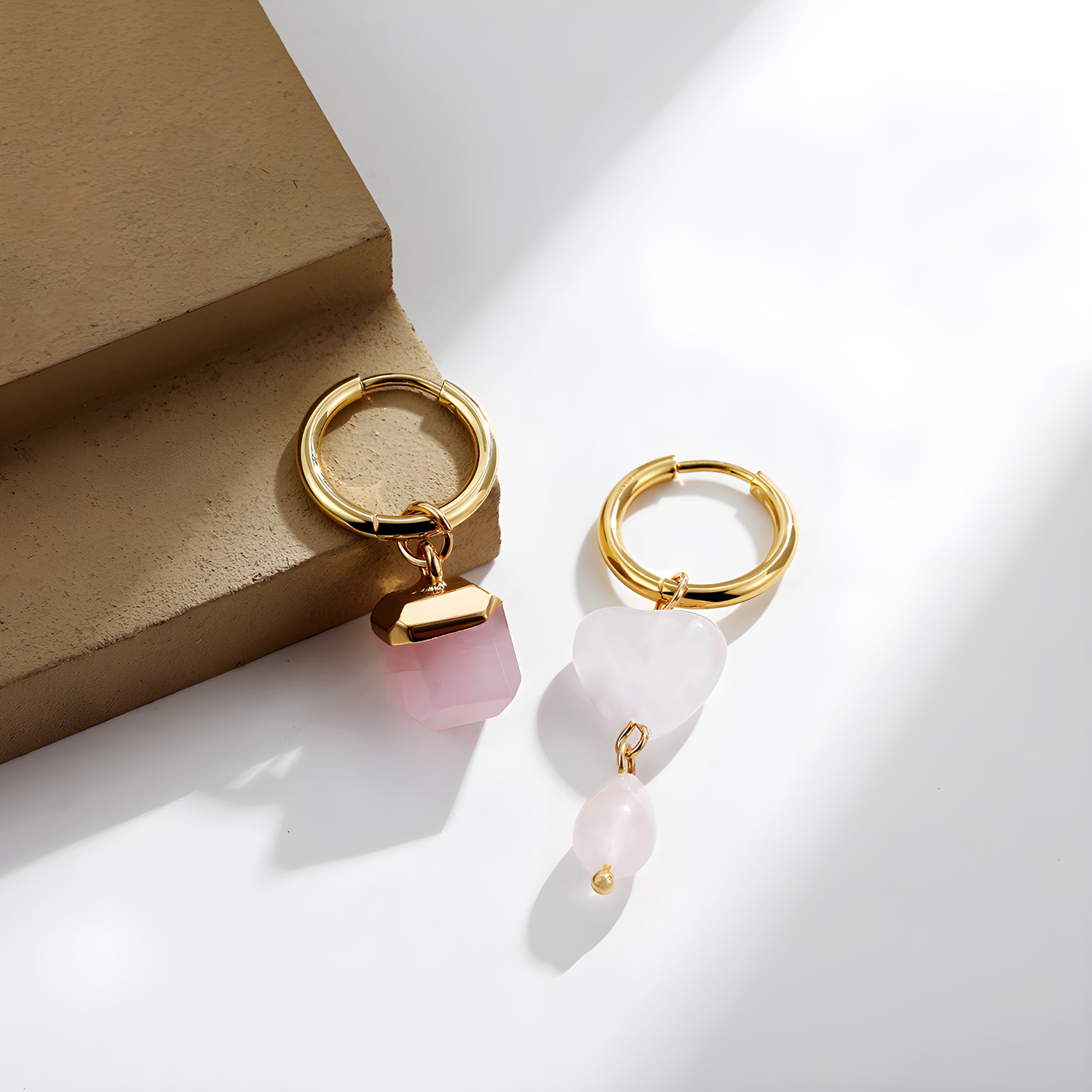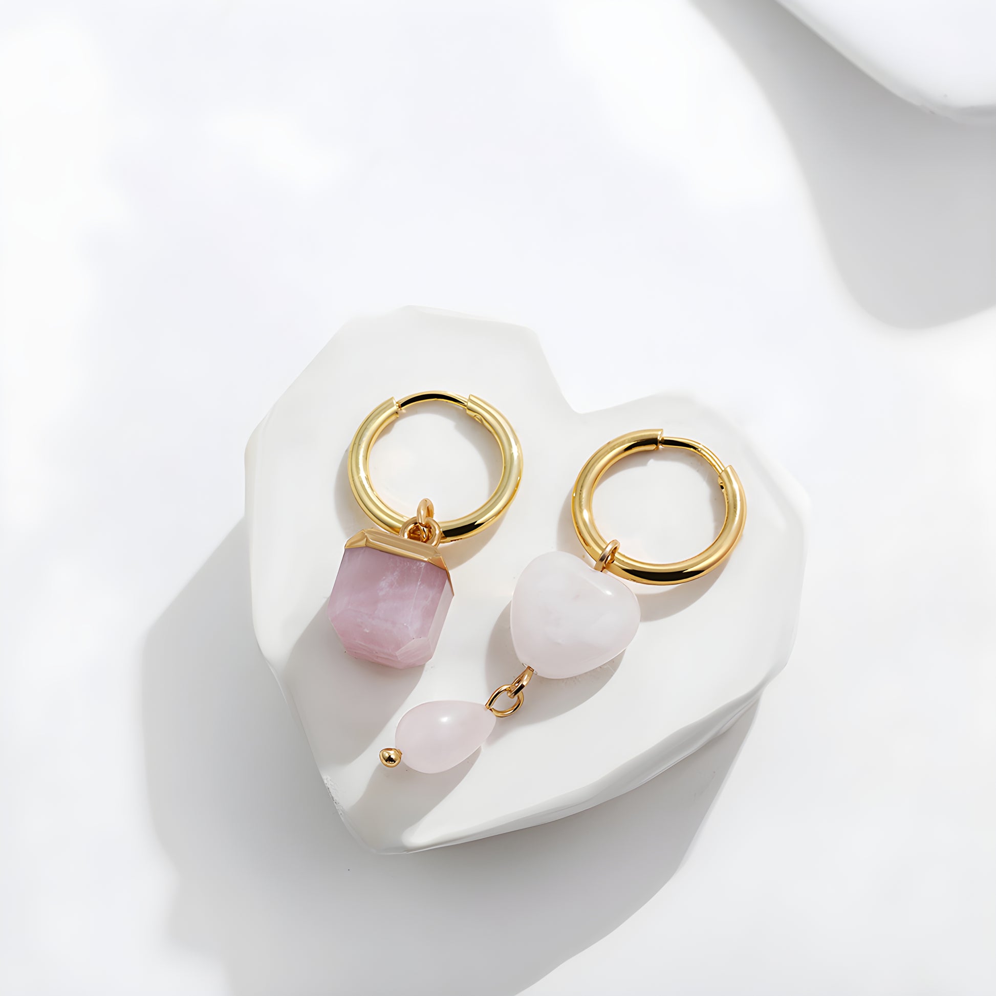 Orecchini a Cerchio Placcato Oro con Pietre Colorate Cuore